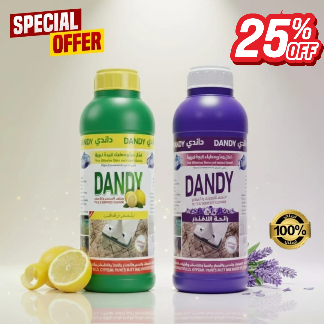 اكتشف قوة التنظيف الفائقة مع داندي برائحة الليمون، المنظف المركز الذي يمنحك نظافة عميقة ولمعان مذهل من أول استخدام، مع انتعاش رائحة الليمون الطبيعي. بتركيبته القوية، يذيب أصعب البقع والاتساخات فور ملامسته للأسطح، ليترك البلاط والسيراميك والجدران نظيفة وكأنها جديدة تمامًا. يتميز Dandy Lemon بقدرته الهائلة على إزالة الصدأ، التكلسات، الدهون، وآثار الصابون، مما يجعله الخيار المثالي لتنظيف الحمامات والمطابخ وكل الأسطح شديدة الاتساخ. إحساس النظافة الفورية يجتمع مع رائحة الانتعاش، ليجعل تجربة التنظيف أكثر سهولة وراحة ونتائج مضمونة.