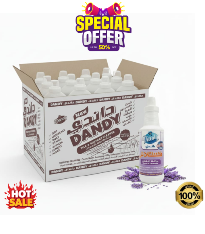 اكتشف قوة التنظيف الفائقة مع داندي برائحة اللافندر ، المنظف المركز الذي يمنحك نظافة عميقة ولمعان مذهل من أول استخدام، مع انتعاش رائحة اللافندر الطبيعي. بتركيبته القوية، يذيب أصعب البقع والاتساخات فور ملامسته للأسطح، ليترك البلاط والسيراميك والجدران نظيفة وكأنها جديدة تمامًا. يتميز Dandy بقدرته الهائلة على إزالة الصدأ، التكلسات، الدهون، وآثار الصابون، مما يجعله الخيار المثالي لتنظيف الحمامات والمطابخ وكل الأسطح شديدة الاتساخ. إحساس النظافة الفورية يجتمع مع رائحة الانتعاش، ليجعل تجربة التنظيف أكثر سهولة وراحة ونتائج مضمونة.